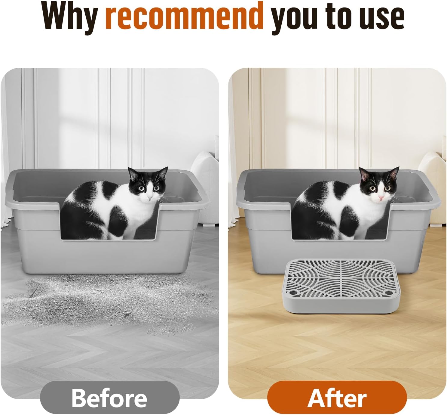 - Easy to Clean: You just need to rinse or wipe it to put it into use. It saves time and effort, and can also keep the area around the cat litter box clean and tidy