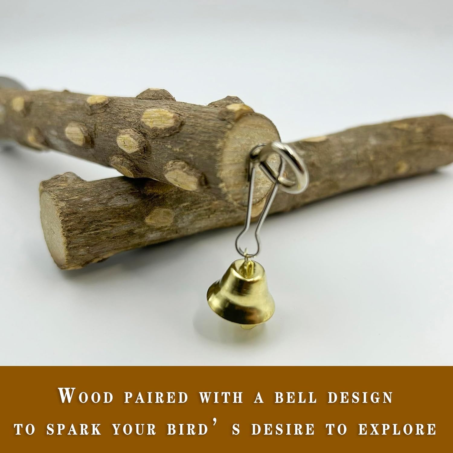 - 5 Types of Parrot Perches: This bird perch set includes 1 Y-shaped prickly ash perch, 1 straight perch for parakeets, 1 prickly ash perch with bell, 1 square wooden platform, and 1 bird swing. Please note: Since the perches are made from natural wood, each piece may vary slightly in shape. Some wood chips may be present in the package due to bark shedding during transport—this is a normal occurrence