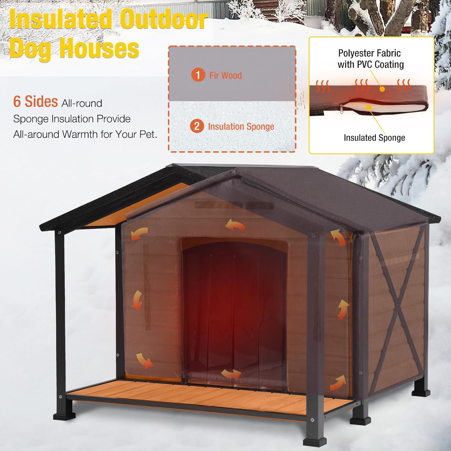 - Sturdy Wood And Metal Structure: Large dog house reinforced with a metal frame and thick solid wood panels for enhanced durability and long-term outdoor use