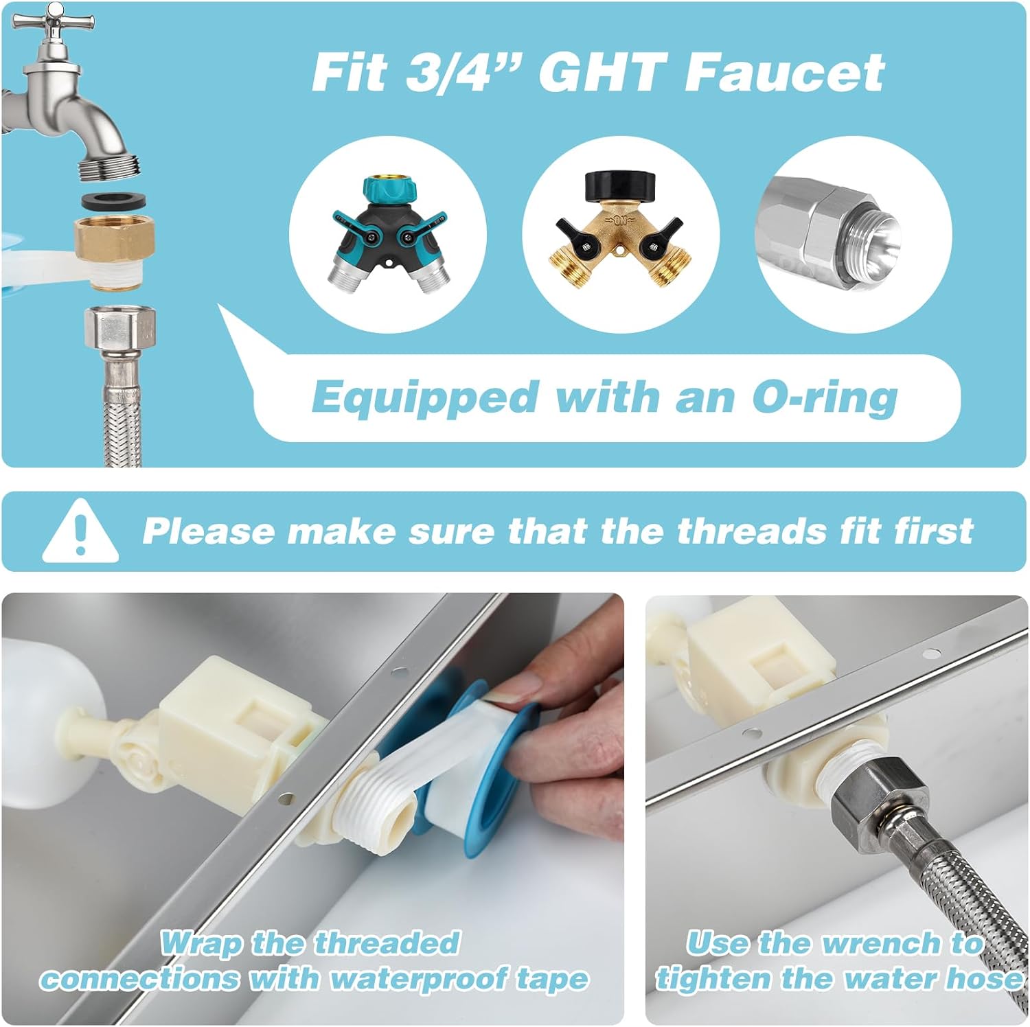 - Easy installation: Auto fill dog water bowl complete fittings, no professional tools or skills are needed, easy to install and use; Equipped with 1/2" hoses and 1/2" to 3/4" copper adapter is designed to fit faucets with GHT 3/4" threads, also comes with 4 anti slip sticker to prevent pet water dispenser from sliding on smooth surfaces; Please check thread compatibility before order