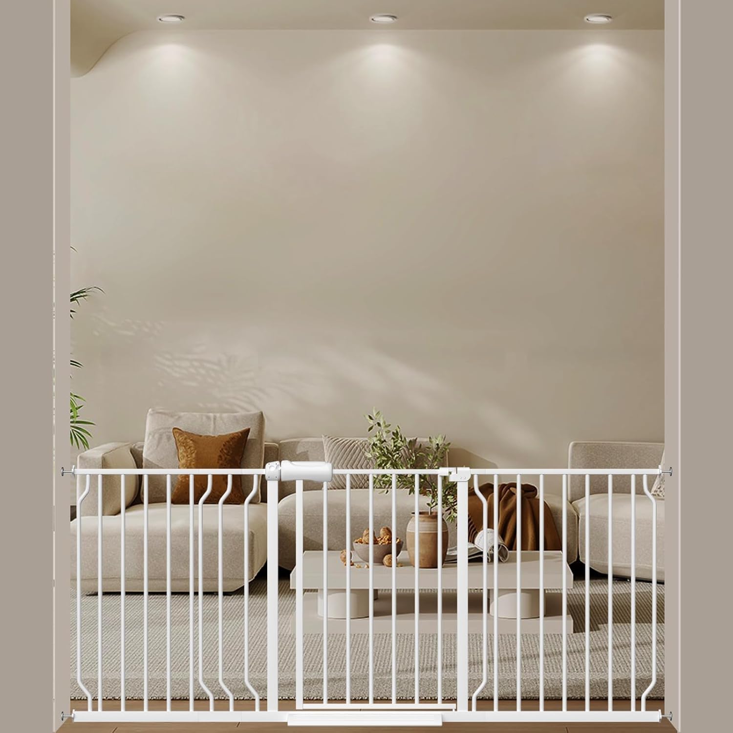 - 【Safe for Baby】Your curious crawlers will be "blocked" by the safety extra wide baby gate because we design the double-lock safety release which makes it difficult for toddlers to open the gate ,but adults can operate with one hand and pass quickly.