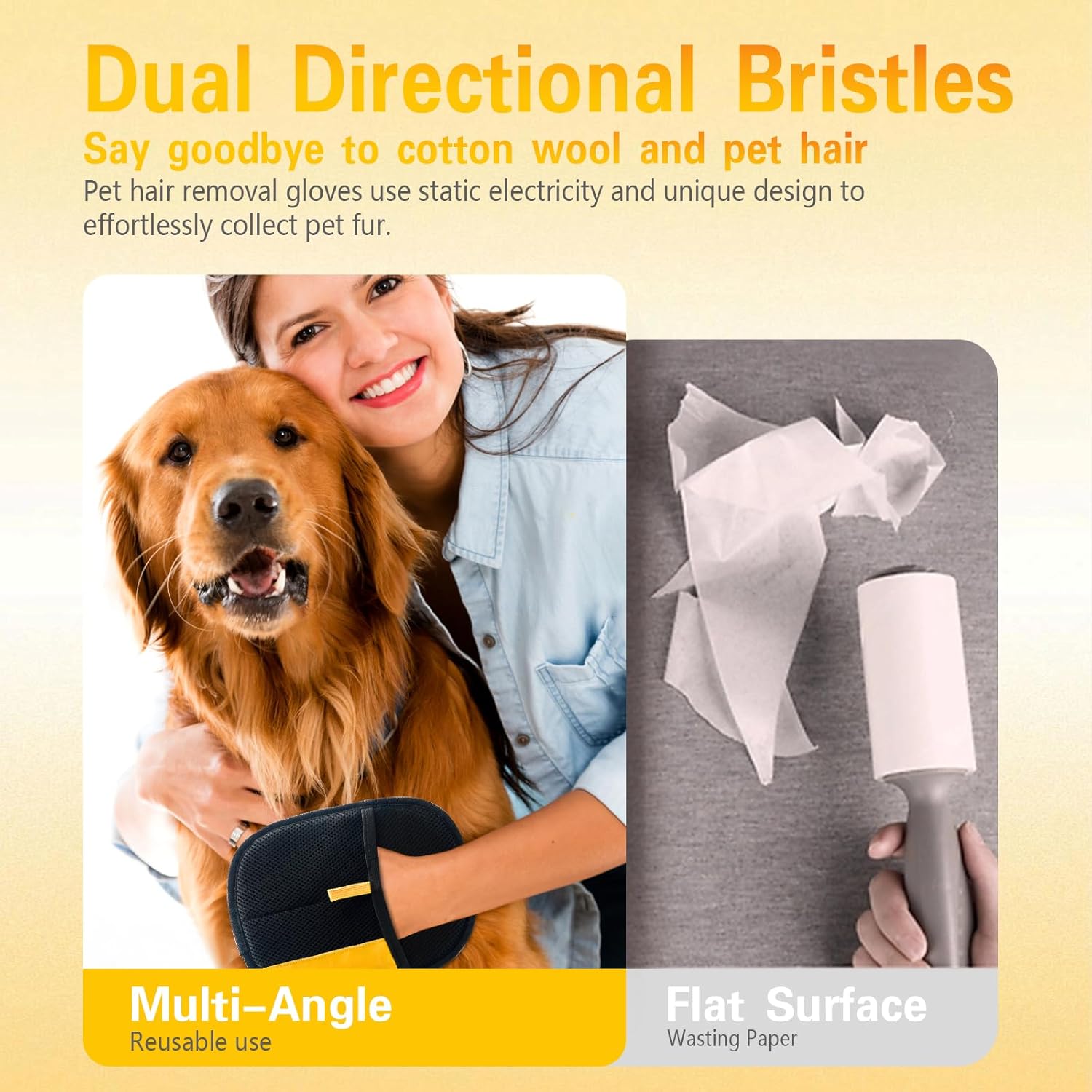 - 【Electrostatic Power Unleashed - Effortless Pet Hair Removal】 Experience the magic of electrostatic gloves for pet hair! This pet hair removal gloves harnesses static cling to magnetically attract and lift stubborn cat and dog hair from fur and fabrics. Simply stroke, watch hair gather into sheets on the gloves, and peel away effortlessly. Say goodbye to tedious rolling forever!