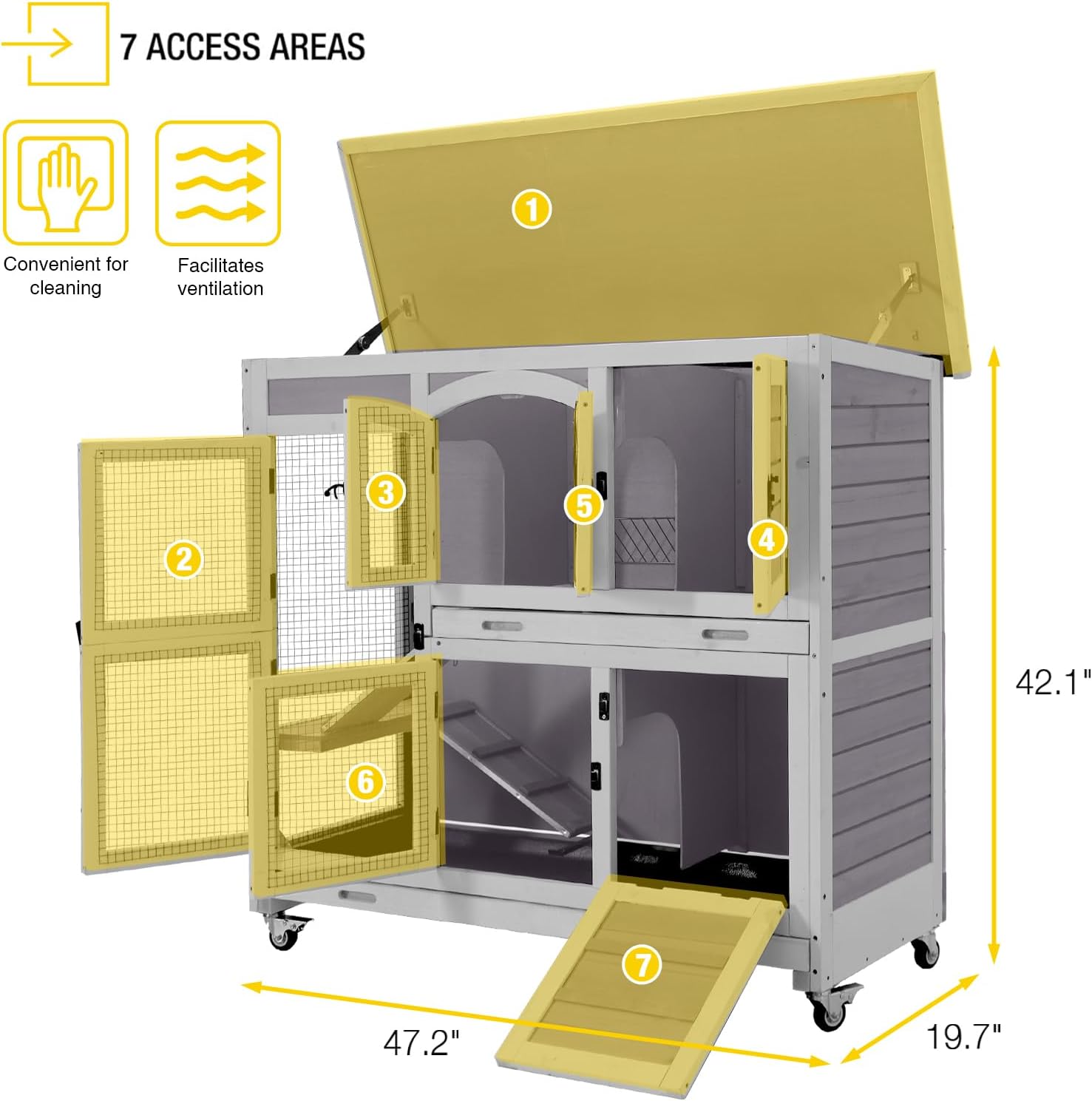 - ๐๐๐ญ๐๐ซ๐ฉ๐ซ๐จ๐จ๐ ๐๐จ๐จ๐ & ๐๐จ๐๐ข๐ฅ๐ ๐๐๐ฌ๐ญ๐๐ซ๐ฌ - Slanted roof protects against rain, while 360ยฐ casters allow easy movement. Ideal for indoor use as a bunny house, ensuring convenience and weather protection