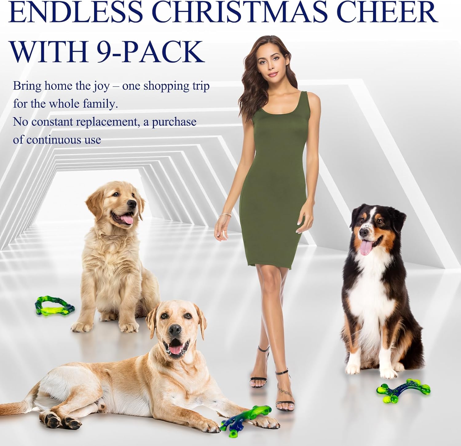 - FRIENHUND CHRISTMAS NEW ARRIVALS: GREEN NINE-PIECE DOG TOY SET LAUNCHES IN SURPRISE: You’ll get more toys, greater savings, and double the enjoyment! Your furry buddy can play on its own or share with other dogs—no more toy conflicts! Bring Christmas happiness to every family member!