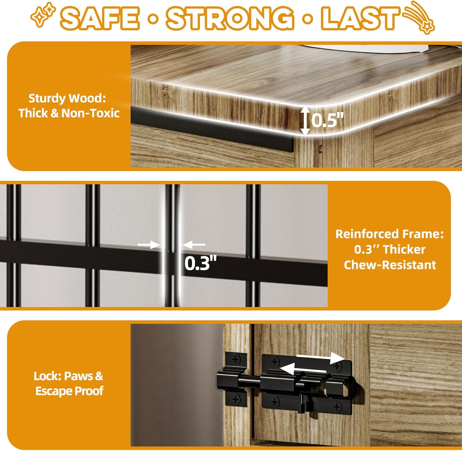 • Space-Saving Double Door: Features an innovative "lift-and-push" front door that opens upward, saving space and preventing accidents. Double door design offers easy access for cleaning, placing beds, or helping your pet in and out
